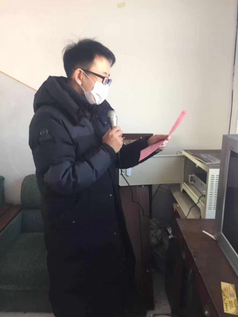 铁岭县新台子镇诸民屯村第一书记叶欣在进行广播防控动员