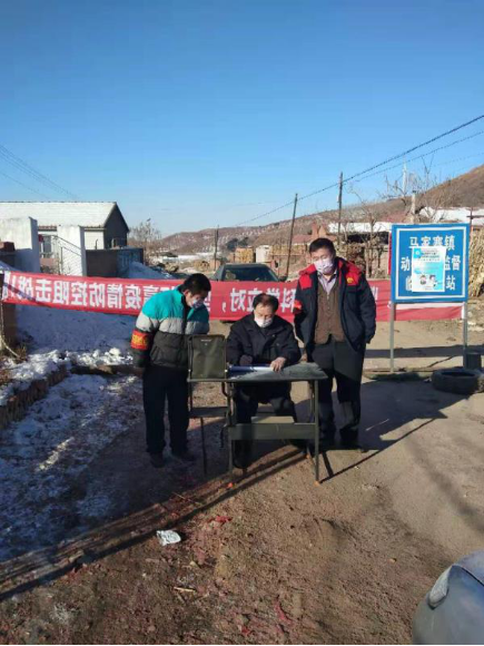 开原市马家寨乡大红石村第一书记毛宏伟在“防疫检查站”工作现场